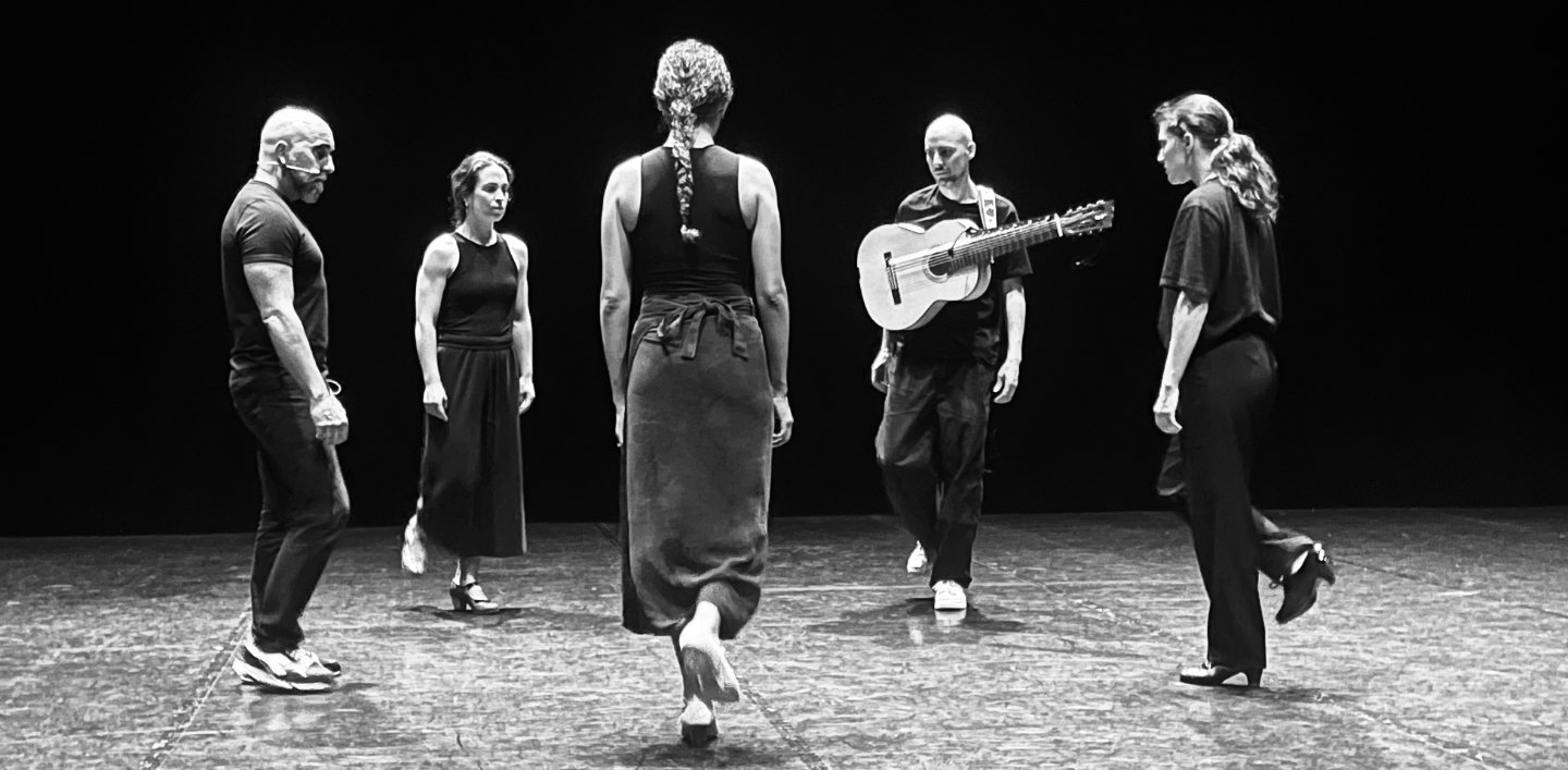 Elle est une danseuse flamenco aux ouvertures des plus contemporaines. Il est un virtuose de la guitare flamenca et du théorbe. Après une première approche du Stabat Mater, en duo, avec la création Stans en 2024, Ana Pérez et José Sanchez développent une écriture pour 3 corps, 1 voix et 1 musicien. Ensemble, les cinq interprètes traversent les états du Stabat Mater, poème moyenâgeux évoquant la figure d’une femme restée debout face à son supplice, la perte de son enfant. Ce corps meurtri mais droit, incarne à la fois les plus grandes peines et la dignité, un double élan immanent à la danse flamenca. Une version profane, musicale, chantée, parlée et chorégraphiée, où les corps, couleurs sonores et rythmes se dupliquent, s’entremêlent et se chevauchent pour un voyage entre les styles et les époques. Un flamenco revivifié par la spiritualité profonde de cette hymne mariale et par la puissance du féminin.